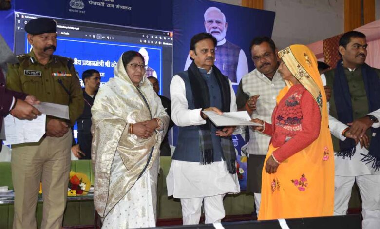 उप मुख्यमंत्री श्री राजेन्द्र शुक्ल ने कहा है कि देश व प्रदेश में विकास कार्यक्रमों के साथ ही हितग्राहीमूलक योजनाएँ प्राथमिकता से क्रियान्वित की जा रही हैं और पात्र लोगों को इनका लाभ दिलाया जा रहा है। उन्होंने कहा कि प्रधानमंत्री श्री मोदी के नेतृत्व में देश में जनकल्याणकारी योजनाएँ संचालित की जा रही हैं। प्रदेश में मुख्यमंत्री डॉ. मोहन यादव के मार्गदर्शन में केन्द्र संचालित योजनाओं के साथ ही प्रदेश स्तर पर जनकल्याण के कार्य कराकर लोगों को इनसे लाभान्वित किया जा रहा है। स्वामित्व योजना से पट्टे मिलने से अब हितग्राही उस जमीन से मालिक बन गये और लोगों को पक्का कानूनी अभिलेख भी मिल गया। उप मुख्यमंत्री श्री शुक्ल ने कहा कि स्वामित्व व भू-अधिकार गांव के विकास का आधार बन रहे हैं। उन्होंने जिला प्रशासन द्वारा तत्परतापूर्वक किये गये पट्टा बनाने व वितरण कार्य की प्रशंसा की। उन्होंने कहा कि आगामी 31 जनवरी तक शेष रह गये हितग्राहियों को भी पट्टे मिल जायेंगे। प्रधानमंत्री श्री मोदी ने देश के 50 हजार से अधिक ग्रामों के 65 लाख हितग्राहियों को स्वामित्व योजना के तहत सम्पत्ति कार्ड का वितरण किया। उप मुख्यमंत्री श्री शुक्ल स्वामित्व योजना के जिला स्तरीय कार्यक्रम नगर निगम टाउन हाल रीवा में शामिल हुए।