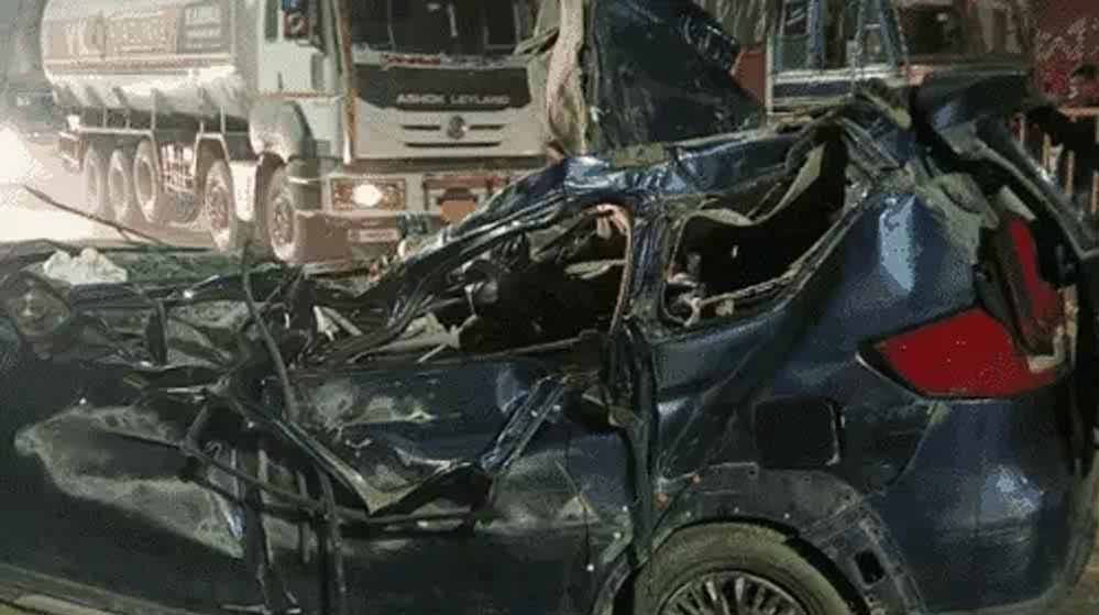 हापुड़ में कार और ट्रक की भिड़त 6 की मौत: तेज रफ्तार कार डिवाइडर तोड़कर दूसरी ओर से आ रहे ट्रक से टकराई
