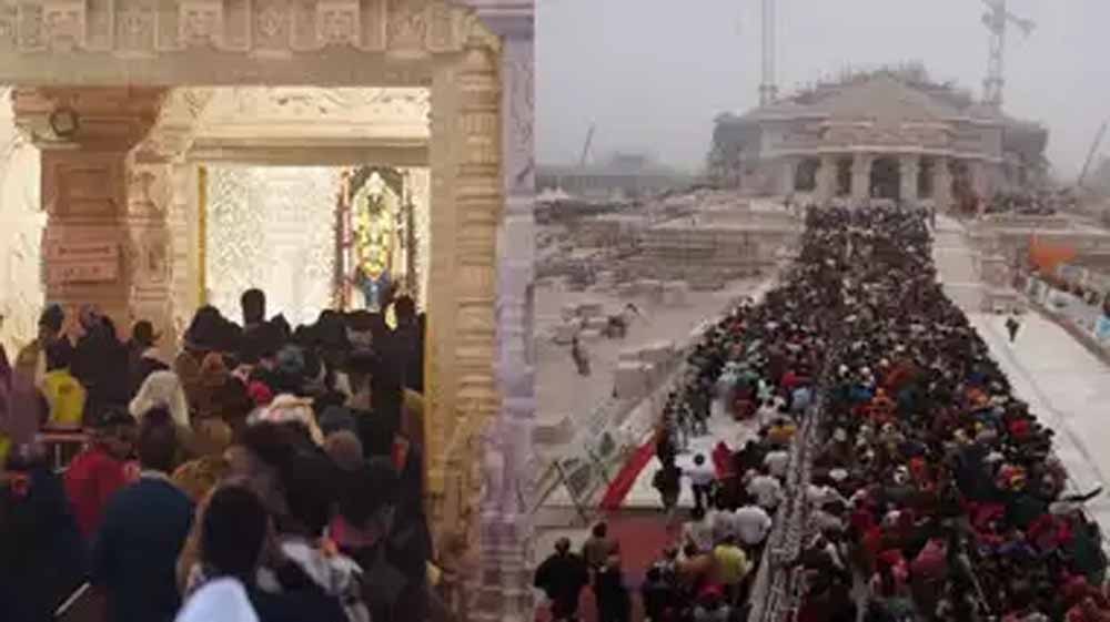 रामनगरी में श्रीरामलला के मंदिर में उमड़ा जनसैलाब, जयकारों से गूंजी अयोध्या