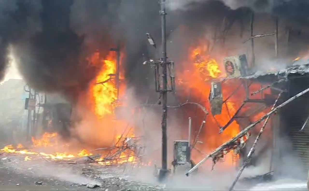आगरा के सबसे बड़े कपड़ा मार्केट में लगी भयंकर आग, दर्जनों दुकानें जलकर खाक