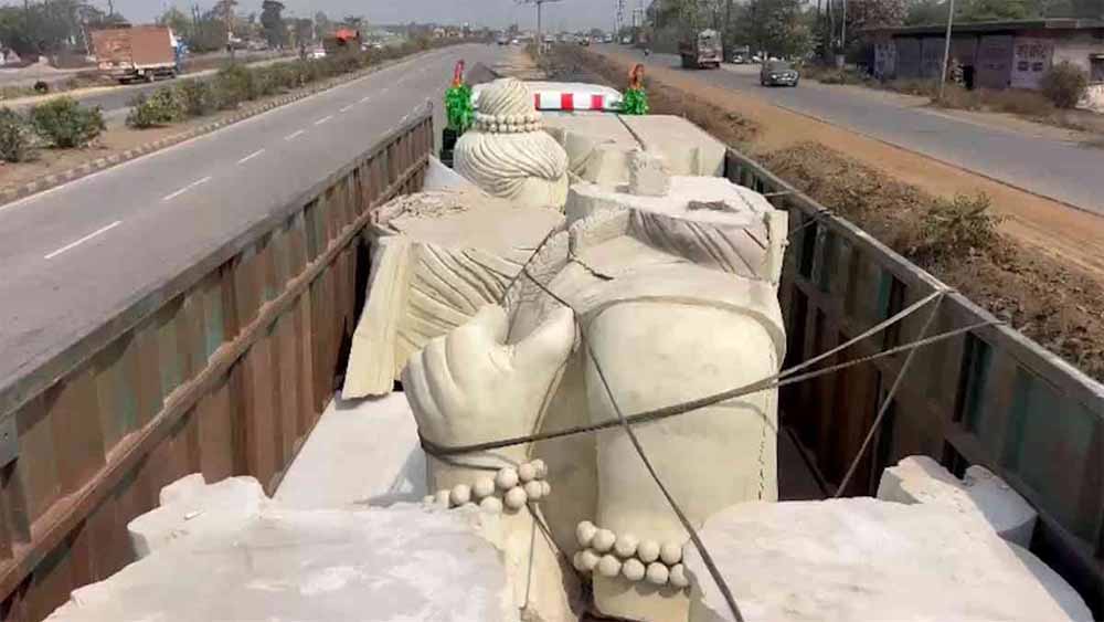 चंदखुरी स्थित कौशल्या माता मंदिर परिसर में स्थापना के लिए ग्वालियर से भगवान श्रीराम की 51 फीट ऊंची वनवासी प्रतिमा रायपुर पहुंच गई है. प्रतिमा रीजनल आर्ट एंड क्राफ्ट डिजाइन सेंटर में प्रसिद्ध मूर्तिकार दीपक विश्वकर्मा ने इस मूर्ति का निर्माण किया है. प्रभु श्रीराम की नई प्रतिमा की स्थापना कांग्रेस शासनकाल में कौशल्या धाम परिसर में वर्ष 2021 में 51 फीट ऊंची श्रीराम की प्रतिमा के स्थान पर की जाएगी.