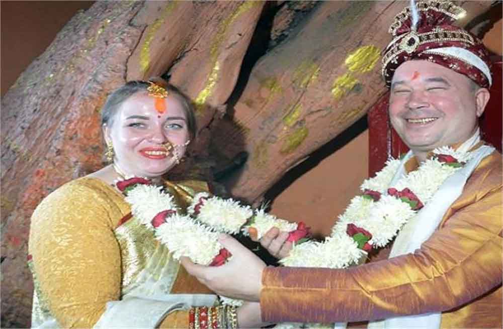 रूस आज केवल वैश्विक राजनीति और युद्ध की खबरों तक सीमित नहीं है। मॉस्को, सेंट पीटर्सबर्ग और साइबेरिया जैसे इलाकों में अब योग कक्षाएं, ध्यान शिविर और भगवद्गीता चर्चा समूह दिखाई देने लगे हैं। यह बदलाव बताता है कि रूसी समाज भीतर से किसी गहरे सुकून की तलाश में है और सनातन धर्म की ओर बढ़ रहा है। इसी की एक अन्य मिसाल  उत्तर प्रदेश की आध्यात्मिक राजधानी काशी में देखने को मिली जहां बुधवार को सनातन संस्कृति की दिव्यता का एक अद्भुत दृश्य देखने को मिला। रूस से आए एक दंपत्ति ने हिंदू धर्म और सनातन परंपराओं से प्रभावित होकर गंगा तट पर वैदिक विधि से विवाह रचाया। बाबा श्री काशी विश्वनाथ को साक्षी मानकर दंपत्ति ने सात फेरे लिए और सात जन्मों तक साथ निभाने का संकल्प लिया।