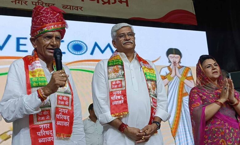 लोक आस्था और ऐतिहासिक परंपराओं के प्रतीक श्री वीर तेजा मेला – 2025 में  उस समय उत्साह और उल्लास का विशेष संचार हुआ जब माननीय केंद्रीय संस्कृति एवं पर्यटन मंत्री श्री गजेंद्र सिंह शेखावत ब्यावर में सुभाष उद्यान स्थित मेला स्थल पर आयोजित भव्य सांस्कृतिक संध्या में उपस्थित हुए।अजमेर से प्रस्थान कर कल शाम को ब्यावर पहुंचे माननीय मंत्री जी का नागरिकों, महिलाओं, युवाओं और बच्चों ने पारंपरिक वेशभूषा एवं सांस्कृतिक रंगों के साथ गर्मजोशी से स्वागत किया।