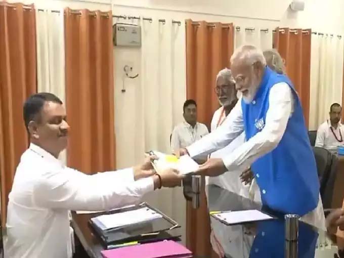 पीएम नरेंद्र मोदी नरेंद मोद ने वाराणसी जिला कार्यालय पहुंच कर पर्चा दाखिल किया। जिला निर्वाचन अधिकारी कार्यालय में पहुंचे पीएम मोदी ने अपने प्रस्तावकों के साथ नामांकन फॉर्म दाखिल किया। इस मौके पंडित गणेश्वर शास्त्री द्रविड़ भी पीएम मोदी के साथ मौजूद रहे। उन्होंने पीएम मोदी के नामांकन के शुभ मुहूर्त को हरी झंडी दी थी।