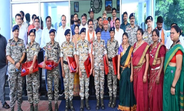 दंतेश्वरी फाइटर्स की महिला जवानों ने गृह मंत्री को बांधी राखी