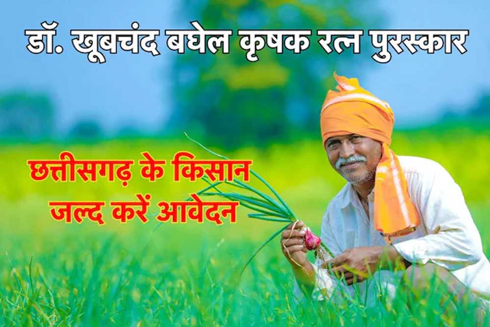 डॉ. खूबचंद बघेल कृषक रत्न पुरस्कार वर्ष 2025-26 के लिए आवेदन आमंत्रित किए गए हैं। कृषि विभाग के उप संचालक ने बताया कि इच्छुक कृषक आवेदन पत्र संबंधित जिला के उप संचालक कृषि कार्यालय से निःशुल्क प्राप्त कर सकते हैं।
