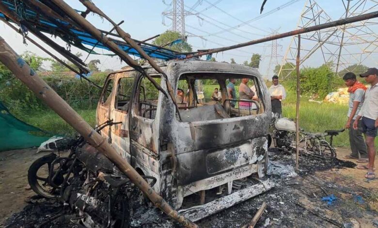 गांव में आतंक फैलाने की कोशिश, पेट्रोल से कार-बाइक में आग