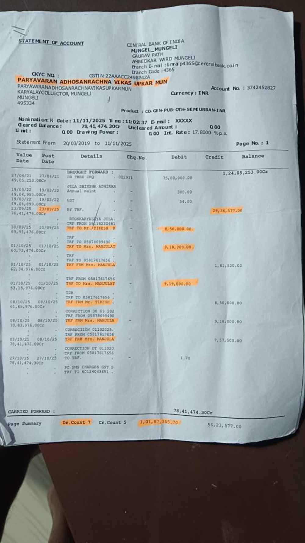 यह पूरा मामला सेंट्रल बैंक ऑफ इंडिया की मुंगेली शाखा का है. अपर कलेक्टर जीएल यादव द्वारा बैंक को जारी नोटिस के बाद यह सच सामने आया कि खाते से हुए लेन-देन कलेक्ट्रेट कार्यालय द्वारा अधिकृत नहीं थे. बैंक ने स्वीकार किया है कि उनके कर्मचारी (CSA) टिकेश कुमार ने आंतरिक वाउचर के जरिए अधिकारियों की गोपनीय आईडी का दुरुपयोग कर अनाधिकृत रूप से यह बड़ी राशि निकाली थी.
