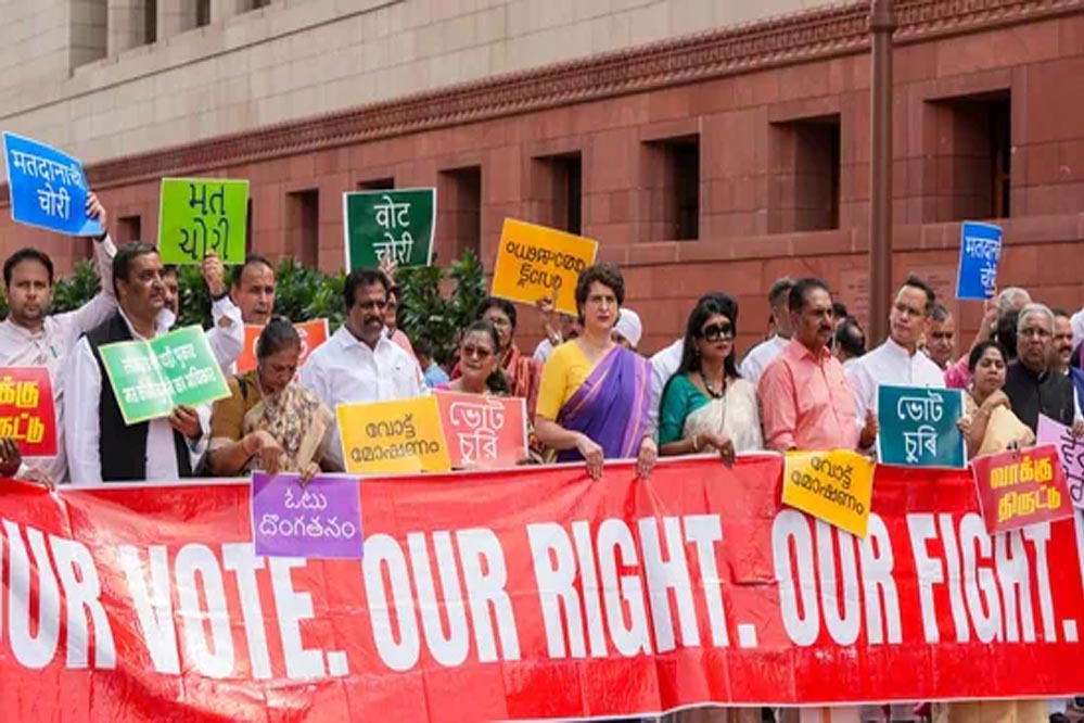 इंडिया गठबंधन के प्रमुख घटक दल कांग्रेस के पूर्व अध्यक्ष और लोकसभा में विपक्ष के नेता राहुल गांधी का सीधा आरोप है कि चुनाव आयोग भाजपा के साथ मिलकर वोट चोरी करवा रहा है और भाजपा को फायदा पहुंचा रहा है। गांधी के आवास पर पिछले सप्ताह आयोजित डिनर में इस विषय पर चर्चा के बाद तय हुआ था कि गठबंधन दलों के सांसद इस मुद्दे पर संसद भवन के मकर द्वार से चुनाव आयोग के कार्यालय तक ट्रांसपोर्ट भवन होते हुए मार्च करेंगे। इसमें संसद के दोनों सदनों के सदस्य भाग लेंगे।