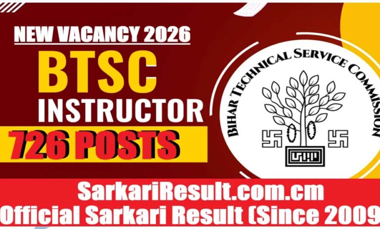 बिहार तकनीकी सेवा आयोग (बीटीएससी) ने इंस्ट्रक्टर (प्रशिक्षक) के विभिन्न 726 पदों पर भर्ती के लिए एक आधिकारिक अधिसूचना जारी की है। इन पदों के लिए ऑनलाइन माध्यम से आवेदन प्रक्रिया 15 अप्रैल से शुरू हो गई है और अप्लाई करने की अंतिम तिथि 15 मई निर्धारित की गई है। ऐसे में जो योग्य और इच्छुक उम्मीदवार एप्लीकेशन फॉर्म भरना चाहते हैं, उन्हें आधिकारिक वेबसाइट पर जाकर तय लास्ट डेट तक या उससे पहले अपना रजिस्ट्रेशन फॉर्म जमा करना होगा।