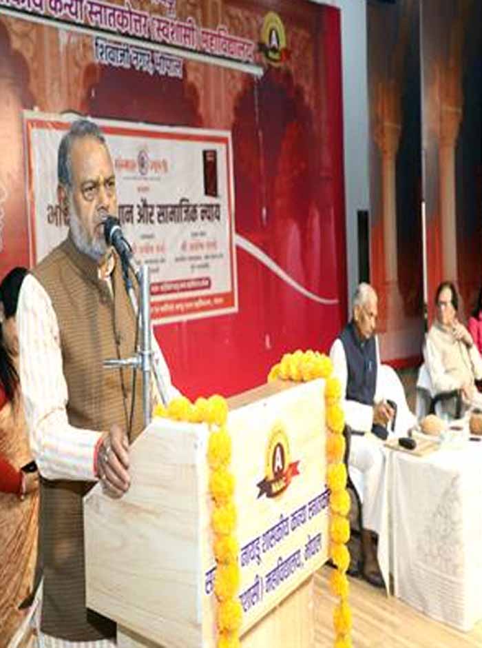 प्रमुख वक्ता श्री अशोक पाण्डे ने कहा कि देश की आजादी के 75 वर्ष होने के बाद भी समाज में सामाजिक समानता की वह बानगी नजर नहीं आती है जिसकी परिकल्पना हमारे स्वतंत्रता आंदोलन के पूर्वजों ने की थी। उन्होंने भारतीय संविधान के गठन की 1927 में साइमन कमीशन से लेकर अक्टूबर 1946 में संविधान सभा के गठन तथा 26 जनवरी 1950 को संविधान लागू किए जाने वाले घटना चक्र पर विस्तृत प्रकाश डाला। उन्होंने कहा कि भारतीय संविधान की मूल भावना समाजिक सामानता और न्याय पर आधारित है, उनका मत है कि सामाजिक न्याय का सिद्धांत तभी लागू हो पायेगा, जब प्रत्येक नागरिक अपने अधिकारों के साथ कर्त्तव्य और दायित्वों पर अमल करेगा। उन्होंने कहा कि शासन-प्रशासन के जितने भी कानून बनते है वह सामाजिक न्याय के मूल सिद्धांत के तहत ही बनाए जाते है। इसके बावजूद सामाजिक न्याय की व्यवस्था कमजोर नजर आती है। उन्होंने कहा कि इसके मूल तीन कारण है एक जनसंख्या विस्फोट संसाधनों से अधिक दोहन, दूसरा परिवारों में संस्कारों पद्धति का समाप्त होना और तीसरा कारण हमारी बढ़ती भोग प्रवृति है। इससे समाज में राग, द्वेष घृणा को प्रवृति बढ़ी है। नागरिक अपने कर्त्तव्यों के स्थान पर अधिकारों की बात करते है। उन्होंने 26 मई 1939 में राष्ट्रपिता महात्मा गॉधी द्वारा सम्पादित समाचार पत्र "हरिजन" का उद्हरण प्रस्तुत करते हुए कहा कि महात्मा गॉधी ने लिखा था कि जब व्यक्ति अपने कर्त्तव्यों का पालन करता है तो अधिकार अपने आप प्राप्त हो जाते है। बाबा साहेब डॉ. भीमराव अम्बेडकर ने समरस समाज की स्थापना का स्वप्न देखा था। जिसमें सभी में प्रेम, स्नेह, समर्पण, त्याग का भाव होगा, सभी मिलकर एक सामाजिक समानता वाले समाज का निर्णाण करेंगे।