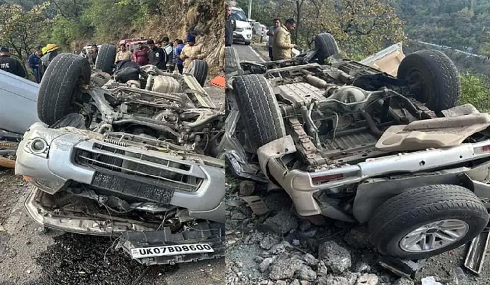 मसूरी में झड़ीपानी के पास कार करीब 60 मीटर नीचे दूसरी सड़क पर गिर गई, 5 लोगों की मौत