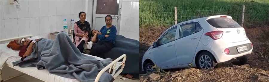 10 फिट गहरे गड्डे में गिरी कार, 6 लोग घायल