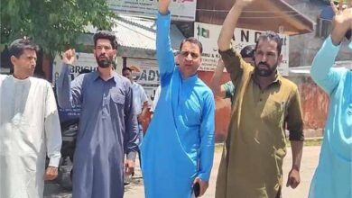 कश्मीर में पाकिस्तान और पाकिस्तान में शरण लिए कश्मीरी आतंकवादी के खिलाफ नारे लगाए व उनके पुतले जलाए