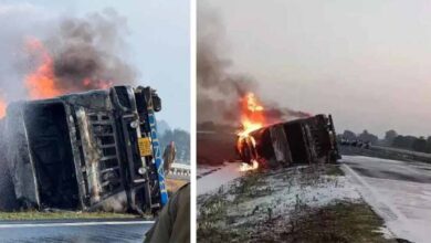 हाईवे पर आफत: मथुरा में केमिकल टैंकर पलटते ही लगी भीषण आग, कई किलोमीटर तक दिखीं लपटें