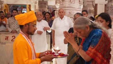 मंत्री निर्मला सीतारमण ने श्रीराम दरबार, मां दुर्गा और महादेव के किए दर्शन, कुबेर टीला पर किया अभिषेक