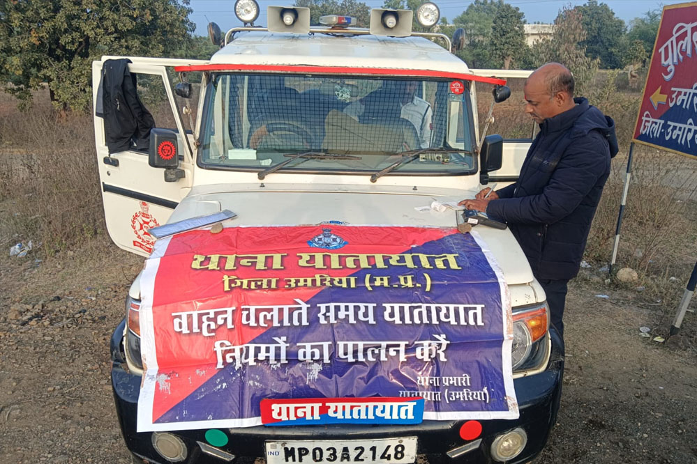 आमजन की सुरक्षा एवं यातायात दुर्घटनाओं में कमी लाने की उद्देश्य से दिनांक 01 जनवरी 2025 से 31 जनवरी 2025 तक प्रदेश स्तर पर राष्ट्रीय सड़क सुरक्षा माह का आयोजन किया जा रहा है । इस कड़ी में पुलिस अधीक्षक उमरिया श्रीमति निवेदिता नायडू एवं अति. पुलिस अधीक्षक उमरिया के निर्देशन/मार्गदर्शन में उमरिया यातायात पुलिस द्वारा आमजन में यातायात नियमों का पालन करने के लिये जागरूकता लाने हेतु जिलें में यातायात जागरूकता अभियान चलाया जा रहा है साथ ही नियमों का उल्लंघन करने वाले वाहन चालको के खिलाफ सख्त चालानी कार्यवाहियां की जा रहीं हैं ।