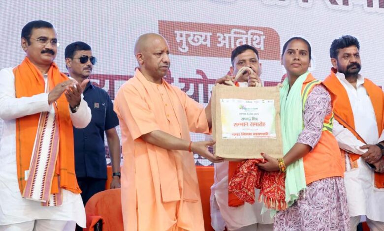 सीएम योगी सोमवार को सरोजा पैलेस, पिपलानी कटरा में स्वच्छता मित्र सम्मान समारोह में शामिल हुए। उन्होंने स्वच्छता ही सेवा पखवाड़ा के अंतर्गत उत्कृष्ट योगदान करने वाले स्वच्छता मित्रों का सम्मान और स्वच्छता किट का वितरण किया। सीएम ने सफाईमित्रों पर पुष्पवर्षा भी की। एक बच्ची ने सीएम के साथ फोटो भी खिंचवाई।