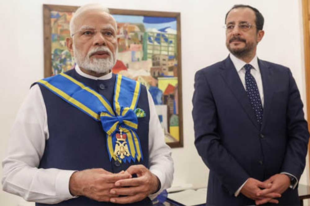 मुख्यमंत्री डॉ. मोहन यादव ने प्रधानमंत्री श्री नरेन्द्र मोदी को साइप्रस के राष्ट्रपति श्री निकोस क्रिस्टोडौलिडेस द्वारा साइप्रस के सर्वोच्च सम्मान "ग्रांड क्रॉस ऑफ द ऑर्डर ऑफ माकारिओस थर्ड" से सम्मानित किए जाने पर हार्दिक अभिनंदन किया है। मुख्यमंत्री डॉ. यादव ने सोशल मीडिया 'एक्स' पर कहा कि प्रधानमंत्री श्री मोदी को साइप्रस के सर्वोच्च सम्मान से सम्मानित किया जाना 140 करोड़ भारतीयों के लिए गर्व एवं स्वाभिमान का विषय है। यह विश्व मित्र भारत का सम्मान है। मुख्यमंत्री डॉ. यादव ने इस अमूल्य एवं अभूतपूर्व उपलब्धि के लिए प्रदेशवासियों की ओर से भी प्रधानमंत्री श्री मोदी का हार्दिक अभिनंदन किया है।