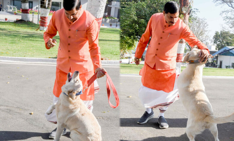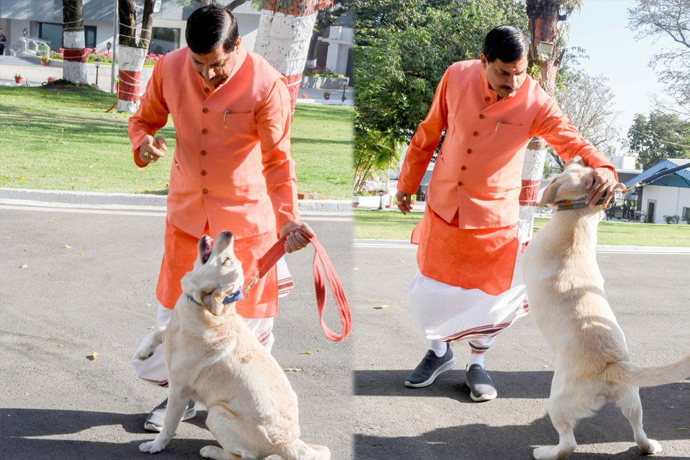 मुख्यमंत्री डॉ. यादव ने मंगलवार को निवास से ओंकारेश्वर प्रवास के लिए रवाना होते समय, पुलिस जवान के साथ मौजूद डॉग स्क्वॉड को दुलार किया। डॉग स्क्वॉड की डॉली और लाली ने प्राप्त प्रशिक्षण के अनुसार निर्देशों का पालन करते हुए अभिवादन किया।