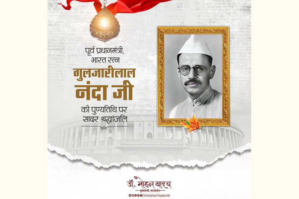 पूर्व कार्यवाहक प्रधानमंत्री स्व. नंदा की पुण्यतिथि पर मुख्यमंत्री डॉ. यादव ने दी श्रद्धांजलि