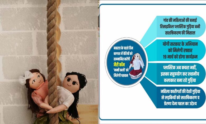 मुख्यमंत्री योगी आदित्य नाथ की मंशा के अनुरूप नवरात्र के पहले दिन बागपत में बेटियों के सम्मान और सशक्तीकरण का एक अनूठा उदाहरण देखने को मिलेगा। छह बार की बॉक्सिंग विश्व चैंपियन मैरीकॉम ‘नन्ही कली’ कार्यक्रम में शामिल होकर बेटियों को सम्मानित करेंगी। गांव की महिलाओं द्वारा रिसाइकिल प्लास्टिक से तैयार की गई गुड़िया ‘नन्ही कली’ इस पहल का केंद्र है। इसके जरिए पर्यावरण संरक्षण, महिला आत्मनिर्भरता और ‘बेटी बचाओ, बेटी पढ़ाओ’ जैसे योगी सरकार के अभियानों को नई मजबूती मिलेगी।