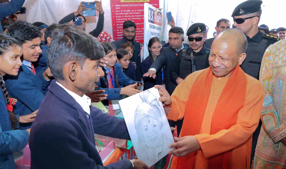 महोत्सव में स्टालों का अवलोकन किया सीएम योगी ने