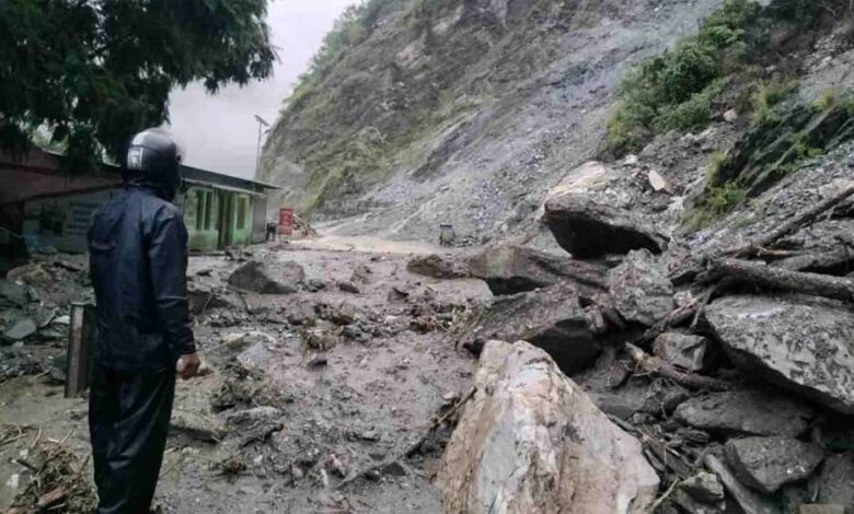कर्णप्रयाग में मूसलाधार बारिश के चलते कालेश्वर में पहाड़ से आया मलबा