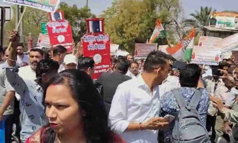 गैस संकट के खिलाफ कांग्रेस सड़कों पर, खाली सिलिंडर के साथ किया प्रदर्शन