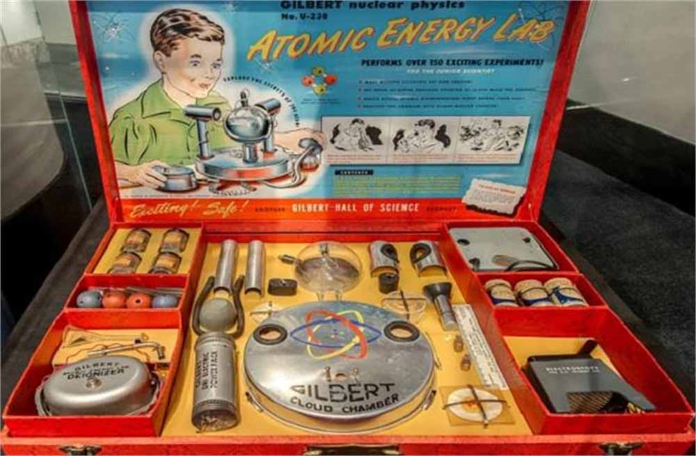 वह खतरनाक खिलौना था 'गिल्बर्ट यू-238 परमाणु ऊर्जा प्रयोगशाला'। यह 1950 के दशक की शुरुआत में बेचा गया था। यह एक रेडियोएक्टिव खिलौना और साथ ही एक लर्निंग सेट भी था। $49.50 में मिलने वाले इस खिलौने में यूरेनियम अयस्क के चार सैंपल (ऑट्यूनाइट, टॉर्बरनाइट, यूरेनिनाइट, कॉर्नोटाइट) शामिल थे। इसके साथ इसमें एक गाइगर काउंटर (जो रेडिएशन नापने के काम आता है) और अलग-अलग कुछ अन्य औज़ार भी थे।