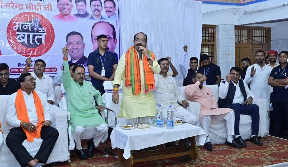 उप मुख्यमंत्री अरुण साव ने आज रायपुर के भनपुरी स्थित पाटीदार समाज भवन में स्थानीय लोगों और युवाओं के साथ प्रधानमंत्री श्री नरेन्द्र मोदी के मासिक रेडियो कार्यक्रम ‘मन की बात’ की 123वीं कड़ी का प्रसारण सुना। प्रधानमंत्री ने आज की 'मन की बात' में देशवासियों से अंतरराष्ट्रीय योग दिवस की सफलता, देश-विदेश में बने कीर्तिमानों, आपातकाल के दौरान लोकतंत्र की हत्या के काले अध्याय जैसे विषयों पर अपने विचार साझा किए। विधायक श्री मोतीलाल साहू ने भी पाटीदार समाज भवन में 'मन की बात' का प्रसारण सुना।