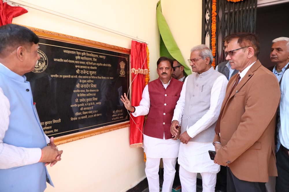 जवाहरलाल नेहरू कृषि विश्वविद्यालय जबलपुर के कुलगुरू डॉ. प्रमोद कुमार मिश्रा ने कहा कि श्री अन्न प्रसंस्करण केन्द्र शुरू होने से विन्ध्य के किसानों को बहुत लाभ होगा। पूरी दुनिया में श्री अन्न की मांग लगातार बढ़ रही है। उन्होंने कहा कि उप मुख्यमंत्री श्री शुक्ल ने कृषि महाविद्यालय के विकास में अतुलनीय योगदान दिया है। आगे भी महाविद्यालय अनुसंधान के क्षेत्र में प्रगति करेगा। सांसद श्री जनार्दन मिश्र, महाविद्यालय के डीन डॉ. संत कुमार त्रिपाठी सहित कृषि महाविद्यालय के प्राध्यापक तथा बड़ी संख्या में विद्यार्थी उपस्थित रहे।