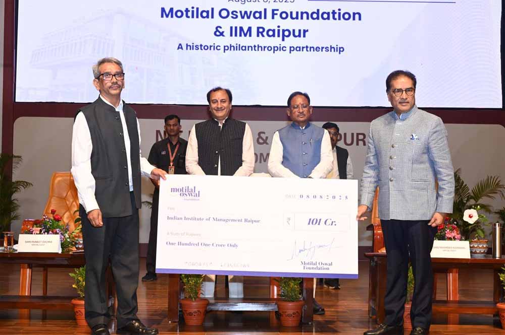 मोतीलाल ओसवाल फाउंडेशन ने आईआईएम रायपुर एवं एनआईटी रायपुर को कुल 172 करोड़ रुपये का दान देने की घोषणा की है। इसमें से 101 करोड़ रुपये आईआईएम रायपुर को तथा 71 करोड़ रुपये एनआईटी रायपुर को प्रदान किए जाएंगे।