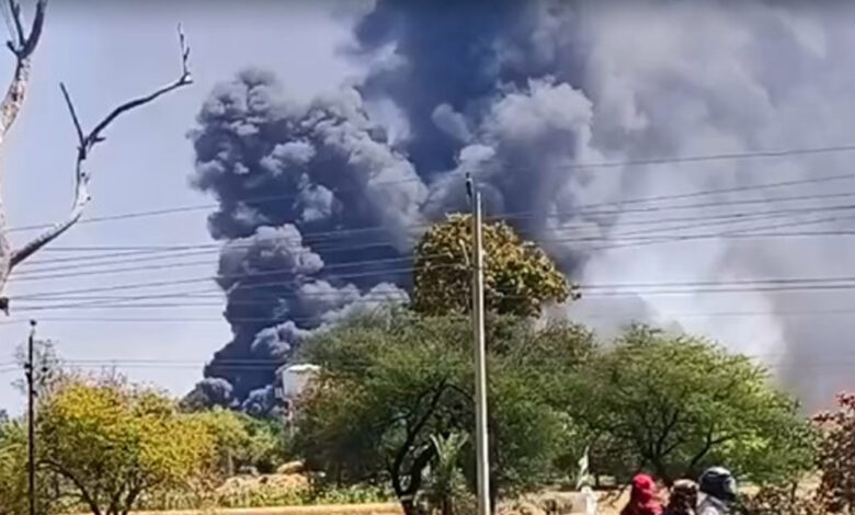 सीहोर में नट-बोल्ट के कारखाने में लगी भीषण आग के बाद हुए धमाके, बुझाने की कोशिश में लगी फायर ब्रिगेड