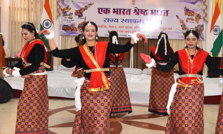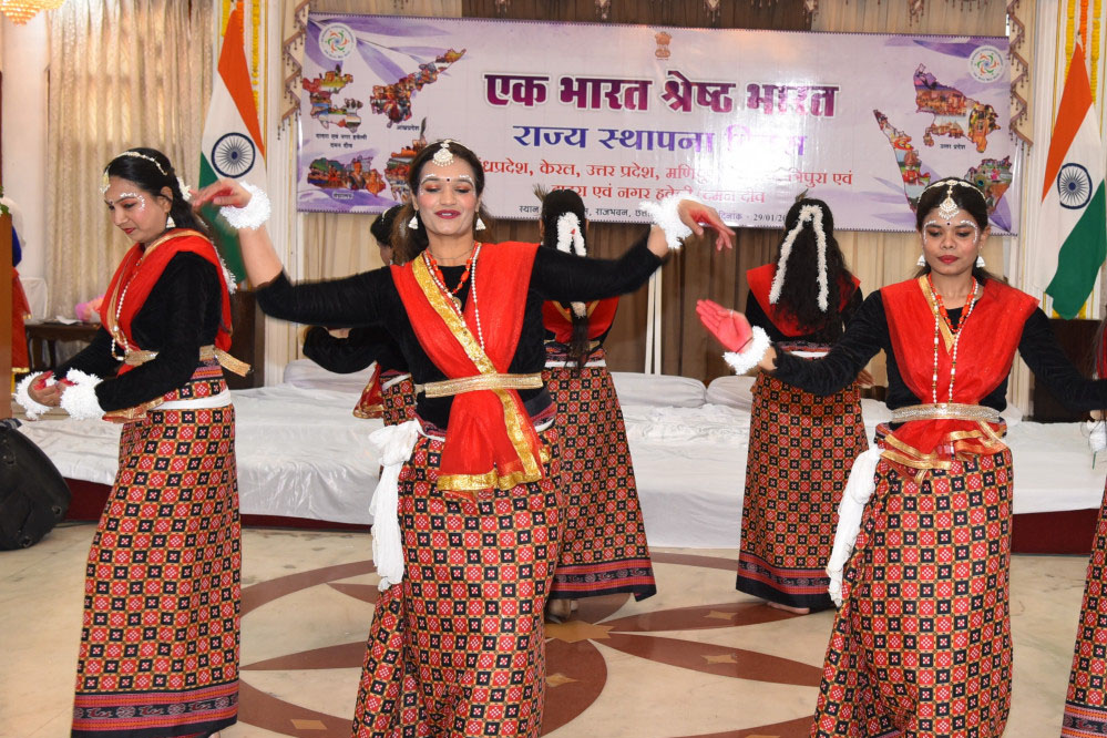 राज्यपाल रमेन डेका की अध्यक्षता में राजभवन में आज यहां ‘एक भारत श्रेष्ठ भारत‘ के तहत आंध्रप्रदेश, केरल, उत्तरप्रदेश, मणिपुर, मेघालय, त्रिपुरा राज्य एवं दादर एवं नगर हवेली व दमन द्वीव का स्थापना दिवस हर्षाेल्लास के साथ मनाया गया। इस अवसर पर इन राज्यों के लोक नृत्यों की प्रस्तुित भी की गई है। साथ ही छत्तीसगढ़ के पंडवानी गायन और सूफी गायन की प्रस्तुति भी दी गई।