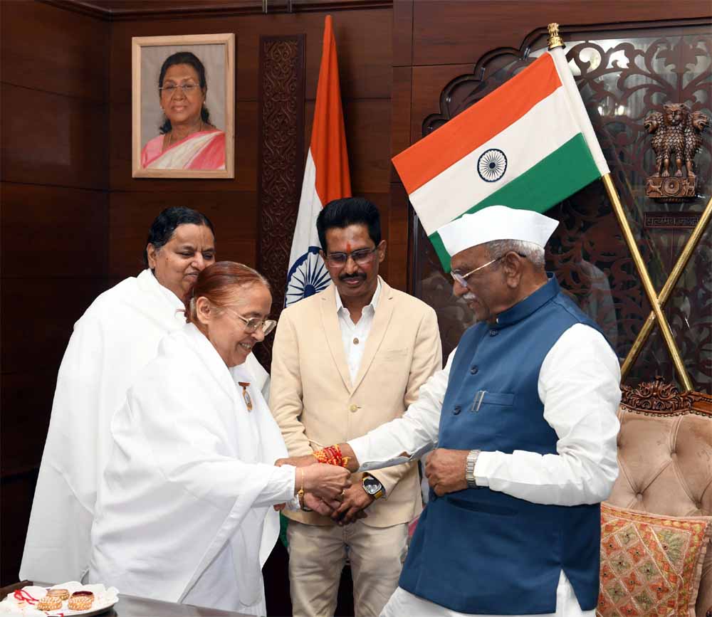 राज्यपाल को बालिकाओं और ब्रह्माकुमारीज की बहनो ने बांधा रक्षासूत्र