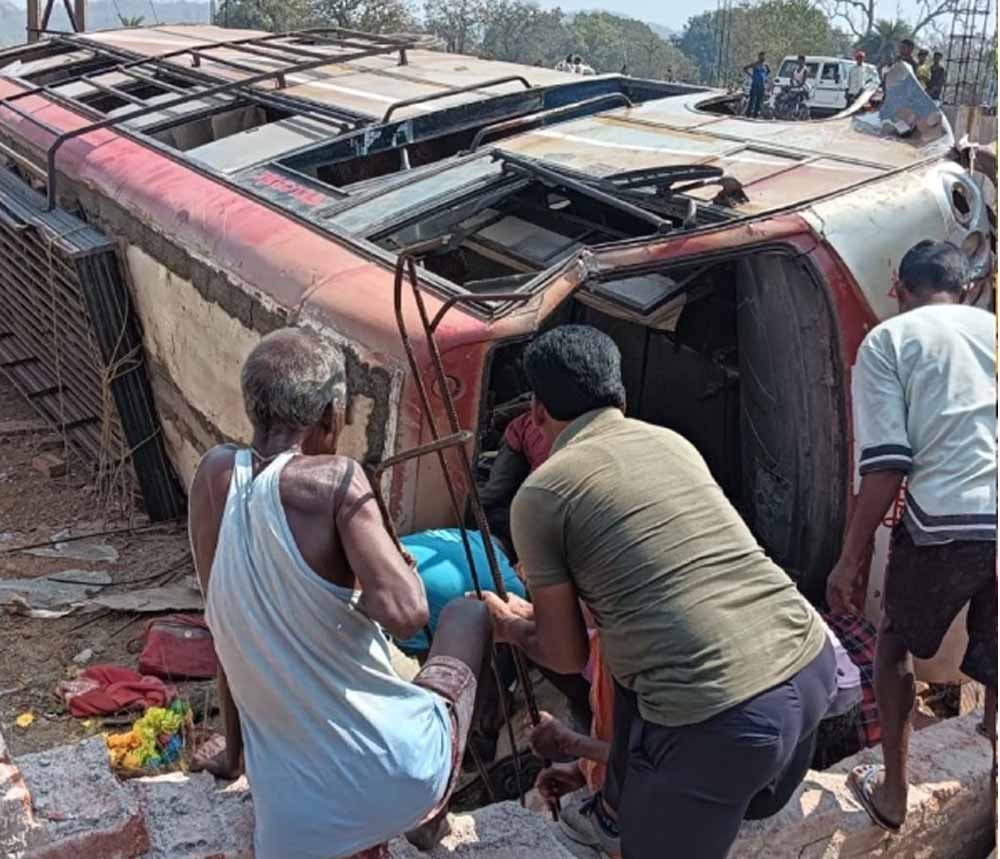 जानकारी के अनुसार झारखंड के सिमडेगा जिले के कुरडेग से जशपुर के कुनकुरी के बीच चलने वाली यात्री बस अनमोल शुक्रवार सुबह करीब 9 बजे कुरडेग से कुनकुरी के लिए रवाना हुई थी। बस जब कुनकुरी से लगभग 14 किलोमीटर दूर हल्दीमुंड पंचायत के आश्रित ग्राम गोड़अम्बा के पास पहुंची, तभी एक पुल के पास अचानक अनियंत्रित हो गई और सड़क किनारे निर्माणाधीन मकान में घुसते हुए गड्ढे में पलट गई।