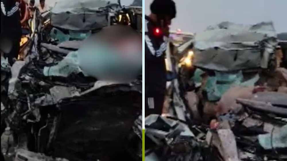 भयानक हादसा: एक्सप्रेसवे पर ट्रक ने 4 KM तक घसीटी कार, चार जिंदगियां खत्म