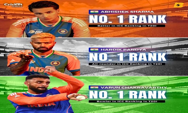 एशिया कप 2025 के बीच ICC (इंटरनेशनल क्रिकेट काउंसिल) की ताजा रैंकिंग में भारतीय खिलाड़ियों का जलवा बरकरार है. अभिषेक शर्मा और वरुण चक्रवर्ती नंबर 1 टी-20 बल्लेबाज और गेंदबाज बने हुए हैं. हार्दिक पंड्या भी नंबर 1 टी20 ऑलराउंडर हैं. वहीं भारतीय कप्तान सूर्यकुमार यादव और तिलक वर्मा ने भी उछाल मारी है.
