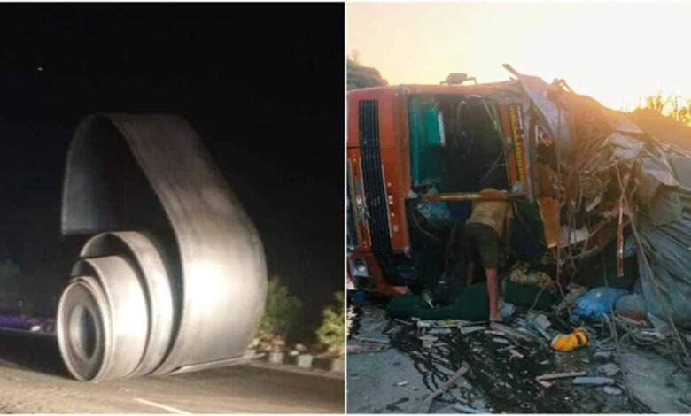 इंदौर रोड एक्सीडेंट: स्टील प्लेट का रोल गिरने से 5 ट्रक-कार भिड़े, एक की गई जान