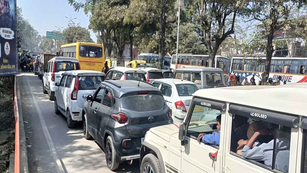 प्रयागराज जाने वाहनों की लंबी लाइन, एमपी-यूपी सीमा पर 8 घंटे में तय हो रही 20 किमी की दूरी