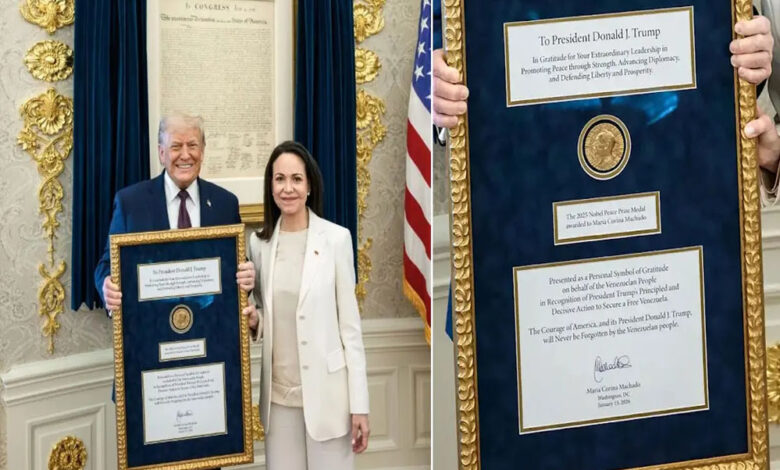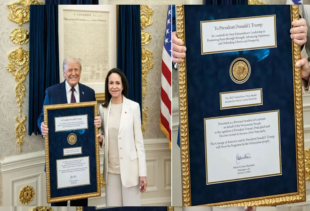 मचाडो ने व्हाइट हाउस में ट्रंप को सौंपा अपना नोबेल पुरस्कार, वेनेजुएला संकट पर हुई चर्चा