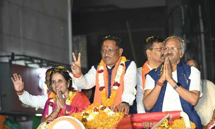 मुख्यमंत्री विष्णु देव साय के नेतृत्व में आज रायपुर में भारतीय जनता पार्टी का भव्य और ऐतिहासिक रोड शो आयोजित हुआ, जिसमें जनसैलाब उमड़ पड़ा। भनपुरी से शुरू हुए इस भव्य रोड शो में भाजपा कार्यकर्ताओं और स्थानीय नागरिकों ने पूरे उत्साह के साथ भाग लिया। सड़कों के दोनों ओर हाथ में कमल का झंडा थामे भाजपा कार्यकर्ताओं एवं आम जनों द्वारा पुष्पवर्षा के माध्यम से रोड शो का जगह-जगह स्वागत किया गया। मुख्यमंत्री श्री साय ने भी जनता का अभिवादन स्वीकार किया। उन्होंने रोड शो में उमड़ी भारी भीड़ के लिए जनता का आभार भी जताया।