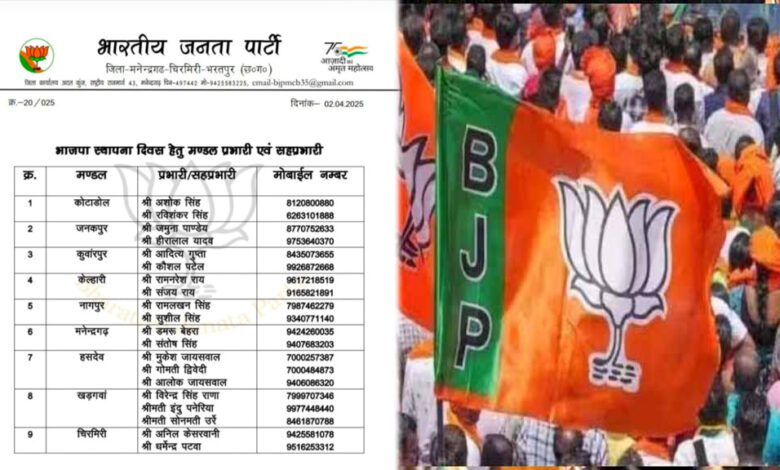 भाजपा स्थापना दिवस पर मंडल प्रभारियों की हुई घोषणा