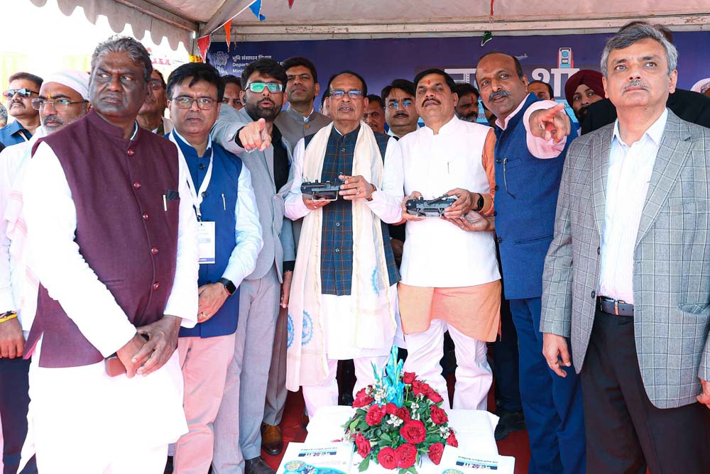 मुख्यमंत्री डॉ. यादव और केन्द्रीय मंत्री श्री चौहान ने ड्रोन उड़ाकर किया शहरी भूमि सर्वेक्षण