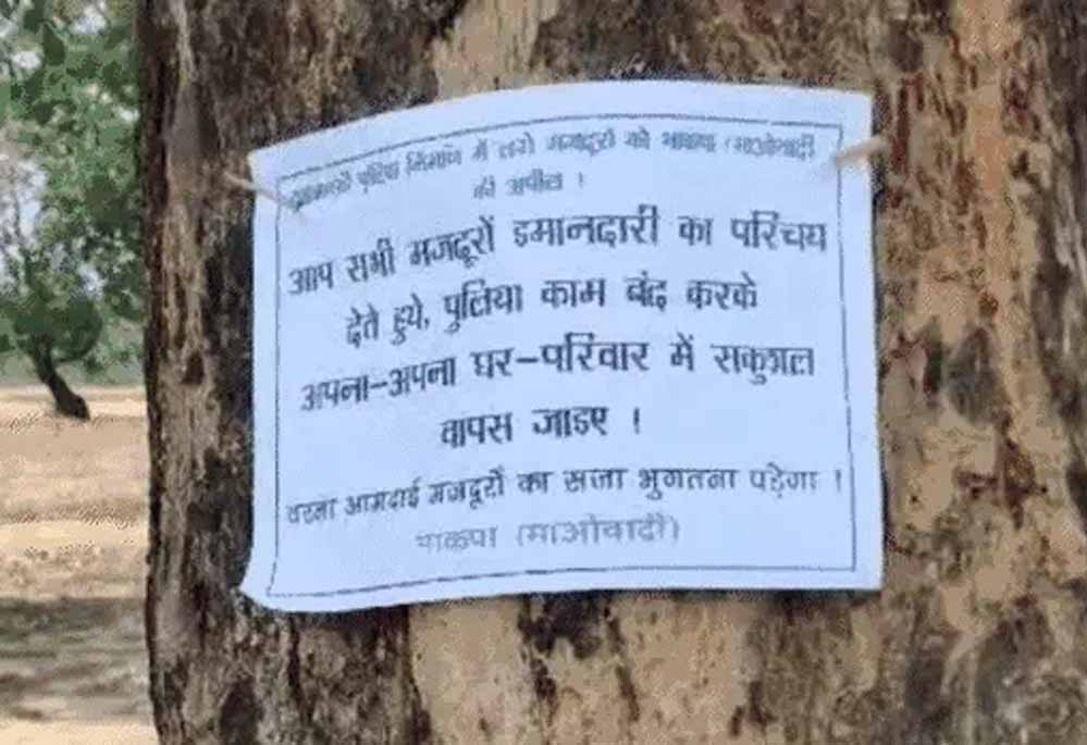 नक्सलियों ने बीजापुर में ग्रामीणों की पिटाई ,मजदूरों को भी धमकी