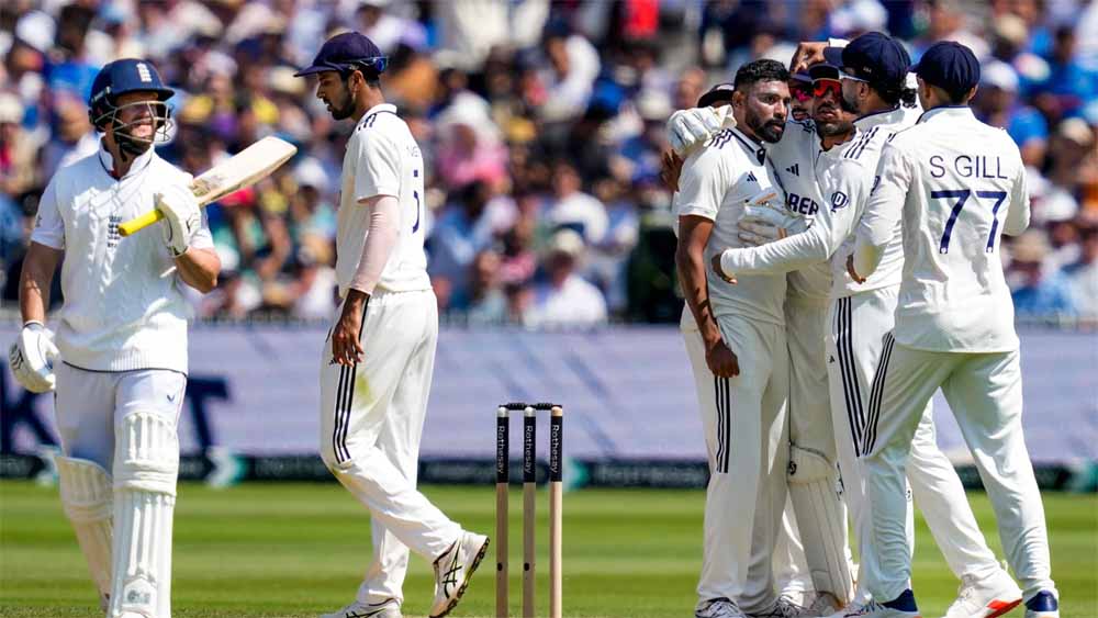 भारत और इंग्लैंड के बीच लॉर्ड्स क्रिकेट ग्राउंड पर तीसरा टेस्ट मैच खेला जा रहा है। मैच के चौथे दिन मोहम्मद सिराज ने बेन डकेट को आउट करके इंग्लैंड को पहला झटका दिया। सिराज ने ओली पोप को भी अपना शिकार बनाया। बेन 12 और ओली 4 रन बनाकर आउट हुए। नीतीश रेड्डी ने जैक क्रॉउली को पवेलियन भेजा। क्रॉउली ने 22 रन बनाया। इंग्लैंड ने पहली पारी में जो रूट के शतक की बदौलत 387 रन बनाए। इसके जवाब में भारत लोकेश राहुल के शानदार शतक की मदद से इंग्लैंड के स्कोर को बराबर करने में सफल रहा। हालांकि भारतीय टीम ने अंतिम सेशन में 71 रन के अंदर पांच विकेट गंवाए, जिससे उसे बढ़त नहीं मिली।