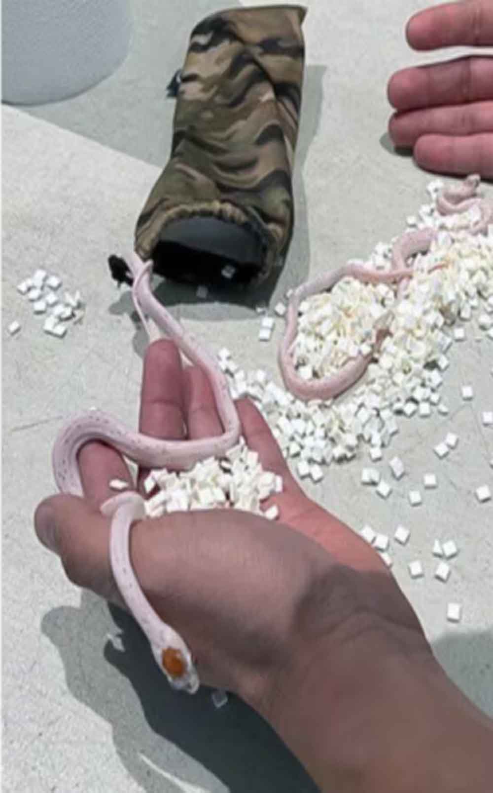 संयुक्त राज्य अमेरिका के मियामी में एयर पोर्ट के सुरक्षा अधिकारी उस वक्त हैरान रह गए जब उनका ऐसे यात्री से सामना हुआ जो अपनी पैंट के अंदर सांप लेकर घूम रहा था। उसने पैंट के अंदर एक थैली में सांप छिपाकर रखे थे। अमेरिकी परिवहन सुरक्षा प्रशासन (टीएसए) ने एक्स पर एक पोस्ट में कहा कि मियामी अंतरराष्ट्रीय हवाई अड्डे के अधिकारियों ने चेकपॉइंट पर एक यात्री के पैंट में सांपों से भरे बैग निकाले। जानकारी के साथ, अधिकारियों ने घटना की तस्वीरें भी सोशल मीडिया में पोस्ट की हैं। जिसमें उस व्यक्ति द्वारा अपनी पैंट के अंदर छिपाए गए बैग से दो छोटे सफेद रंग के सांप बरामद किए गए। अधिकारियों ने बताया कि सांपों को फ्लोरिडा के वन्यजीव संरक्षण आयोग को सौंप दिया गया है। जबकि शख्स को अग्रिम पूछताछ के लिए गिरफ्तार कर लिया गया।