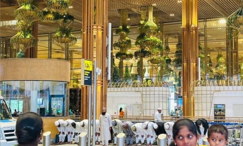 जानकारी के मुताबिक मक्का की यात्रा पर जाने वाले यात्री टर्मिनल नंबर 2 पर नमाज अदा कर रहे थे। हालांकि टर्मिनल के अंदर नमाज अदा करने के लिए अलग से हॉल भी बनाया गया है। वायरल हो रहे वीडियो में देखा जा सकता है कि नमाज के वक्त वहां पर सुरक्षाकर्मी और एयरपोर्ट स्टाफ भी मौजूद था। हालांकि किसी ने उनसे अंदर जाकर नमाज अदा करने को नहीं कहा।