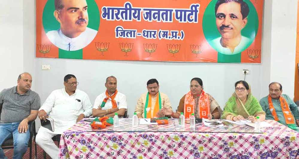 राज्यसभा सांसद एवं भाजपा प्रदेश महामंत्री कविता पाटीदार ने बताया कि देश के यशस्वी प्रधानमंत्री नरेंद्र मोदी जी 7 मई को धार में एक विशाल जनसभा को संबोधित करेंगे जिसमें धार लोकसभा क्षेत्र की आठ विधानसभा क्षेत्र एवं झाबुआ जिले की तीन विधानसभा क्षेत्र से भाजपा के लाखों भाजपा कार्यकर्ता धार पहुंचेंगे और मोदीजी को सुनेंगे। माननीय प्रधानमंत्री नरेंद्र मोदी जी की सभा में जितनी संख्या का हम लक्ष्य ले रहे है यह लक्ष्य शत प्रतिशत पूरा हो यही हमारा काम है। हर कार्य का एक प्रभारी तय करना है । बैठक प्रमुख रूप से लोकसभा प्रभारी नंदकिशोर पाटीदार भाजपा प्रदेश प्रवक्ता गोविंद मालू जिला महामंत्री प्रकाश धाकड़ विष्णु प्रसाद शुक्ला जिला उपाध्यक्ष विश्वास पांडे संजय मुकाती मंडल अध्यक्ष विपिन राठौर और नितेश अग्रवाल भाजपा नेता डॉ शरद विजयवर्गीय नरेश राजपुरोहित अनिल जैन बाबा संजय वैष्णव भाजपा जिला मीडिया प्रभारी संजय शर्मा दीपक सिंह रघुवंशी युवा मोर्चा जिला अध्यक्ष जयसूर्या अनुसूचित जाति मोर्चा जिला अध्यक्ष पूनमचंद फकीरा सहित मोदी जी की सभा को लेकर बनी टोली व्यवस्था के प्रमुख कार्यकर्ता उपस्थित रहे बैठक का संचालन विपिन राठौर व आभार नितेश अग्रवाल ने माना। उक्त जानकारी भाजपा जिला मीडिया प्रभारी संजय शर्मा ने दी।